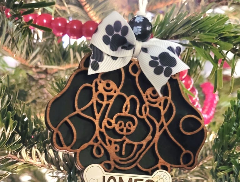At Pawprint Creations, we specialize in beautifully crafted animal wood ornaments and keepsakes, meticulously cut by laser and hand assembled to celebrate your cherished moments with pets.